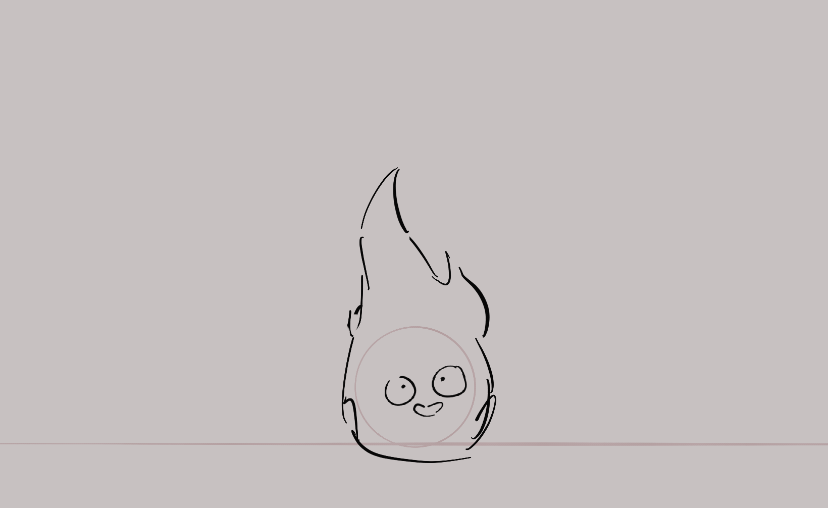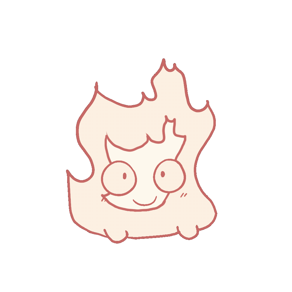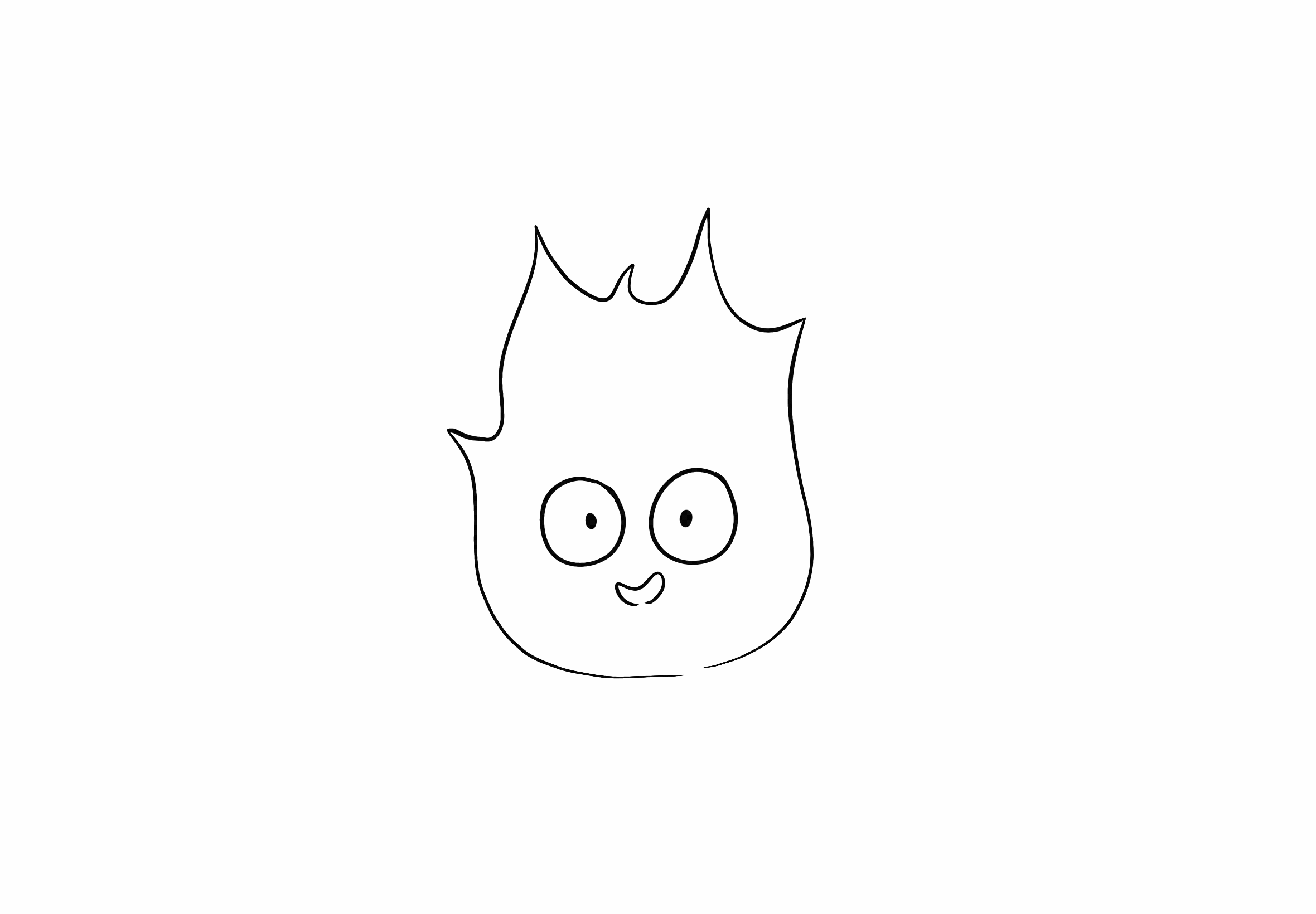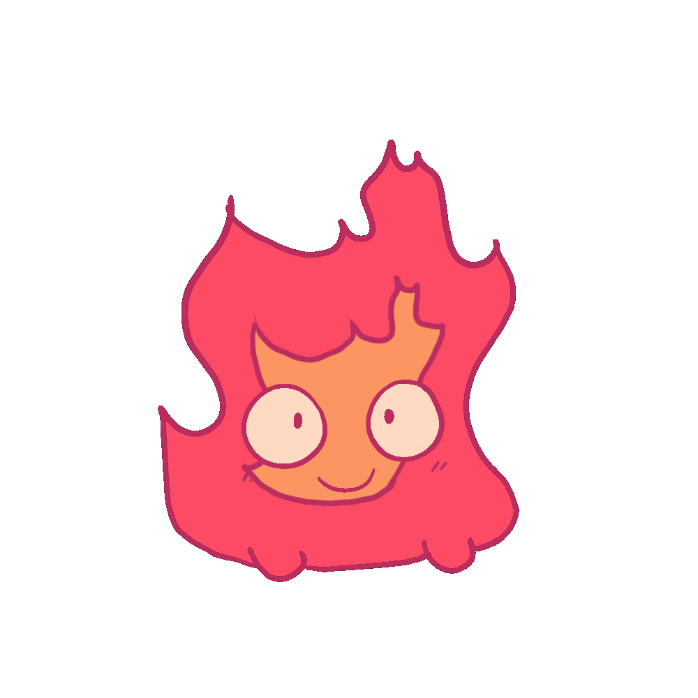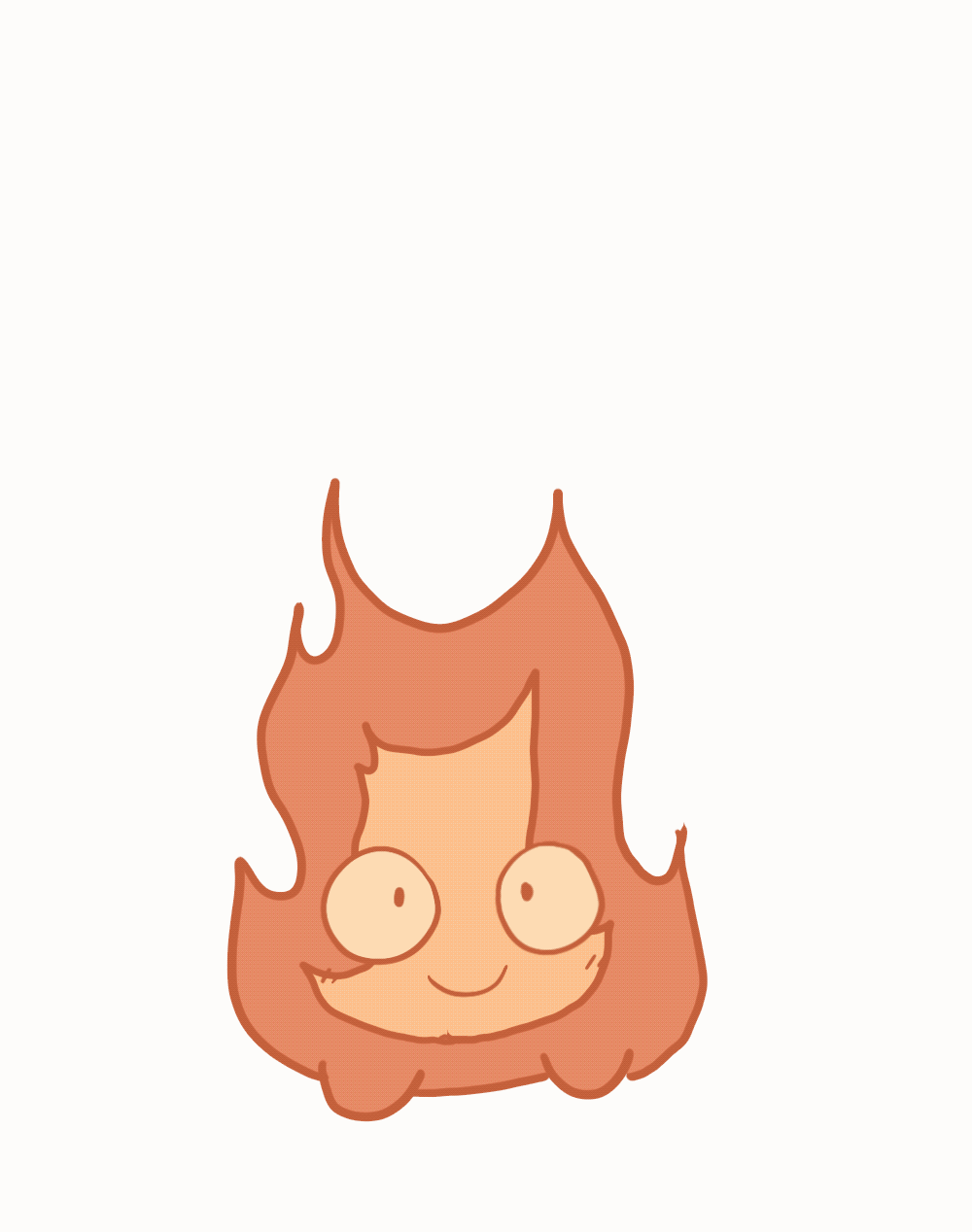 After I established the chemical colors, I received the line art for Calcifer's idle animation. I colored it in and added a cute face. The face wiggles around a bit to make the character come to life. And, as suggested by my teammate, I created a "look around" expression to break things up a bit.
