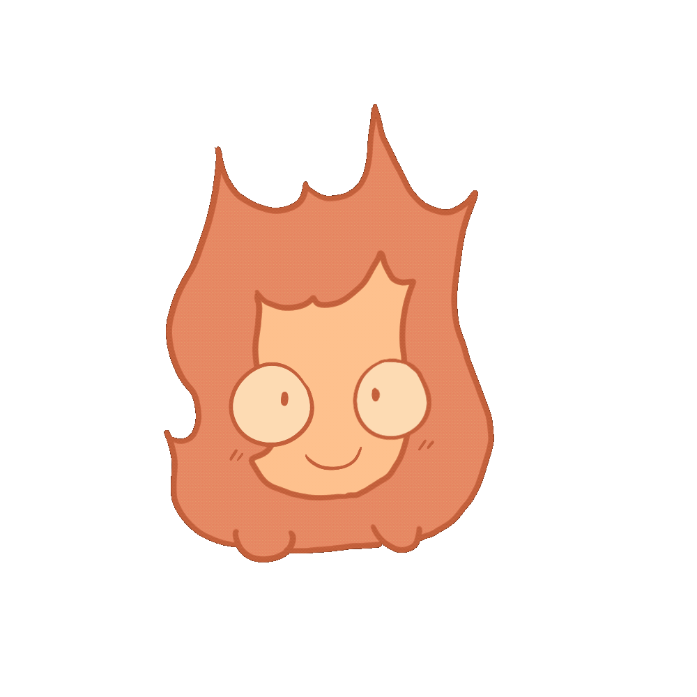 I colored Calcifer using the established palette and added a cute, expressive face. To enhance the sense of life, I incorporated slight wiggling movements in the face. Additionally, following a teammate’s suggestion, I created a “look around” expression to add variety and make the idle animation more dynamic.