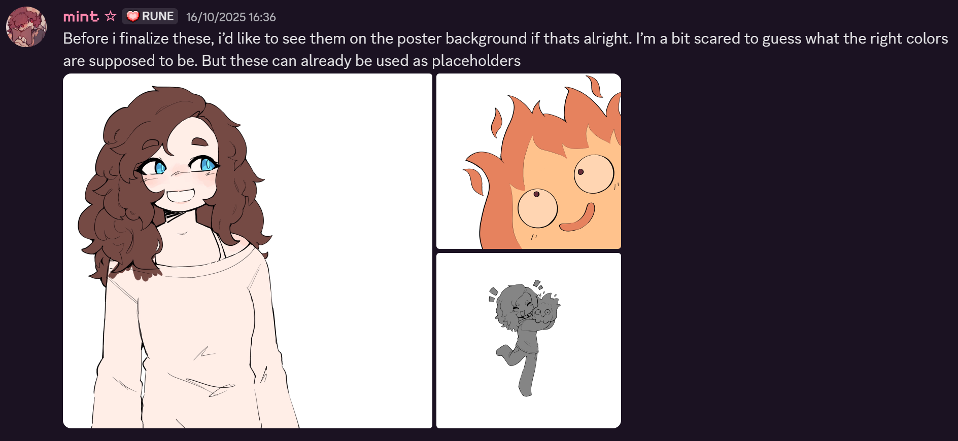 My groupmate's design was continued with, and I created drawn assets for it. Like with any art, I began sketching and waited for a confirmation from my groupmate, the one I am creating the poster with and whose idea we continued on.