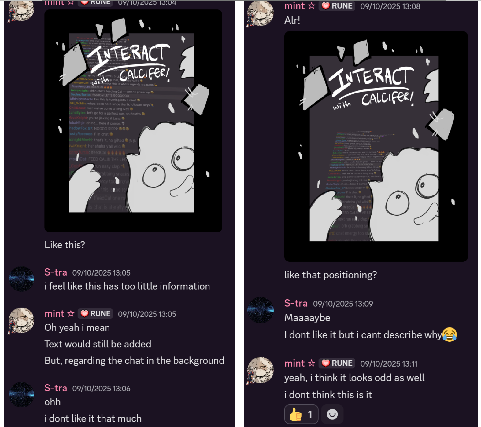 My teammate requested small changes, such as the chat being added in the background, which I tried. Even though I like my ideas, and my teacher also liked them, they were not chosen for the final design.
