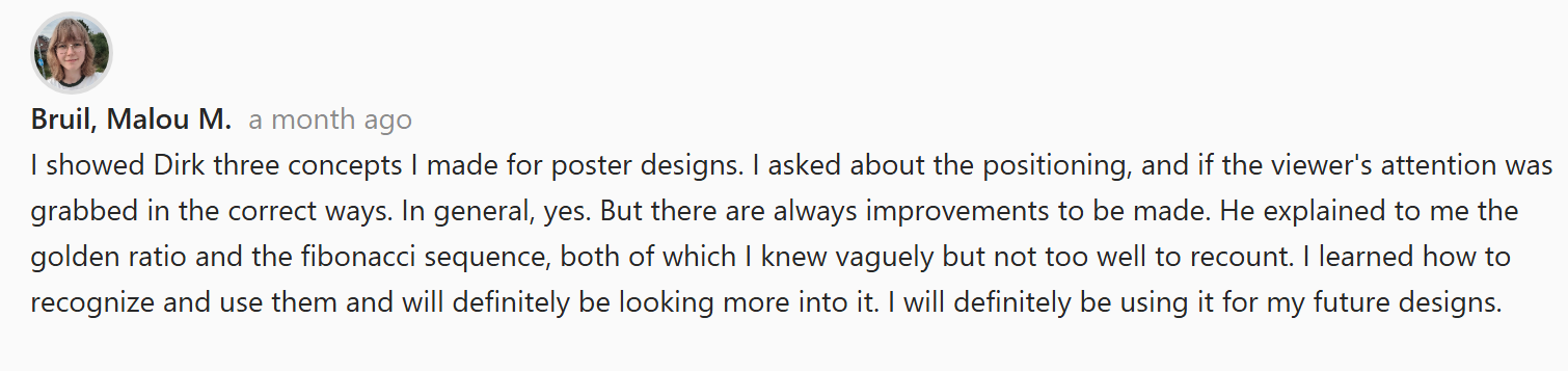 Of course, I want to show off my Feedpulses. I should definitely have asked for feedback more often, but I didn't get to it. Either I was too locked in during work, or I couldn't find an available teacher. I will be more mindful of this going forward, however.
